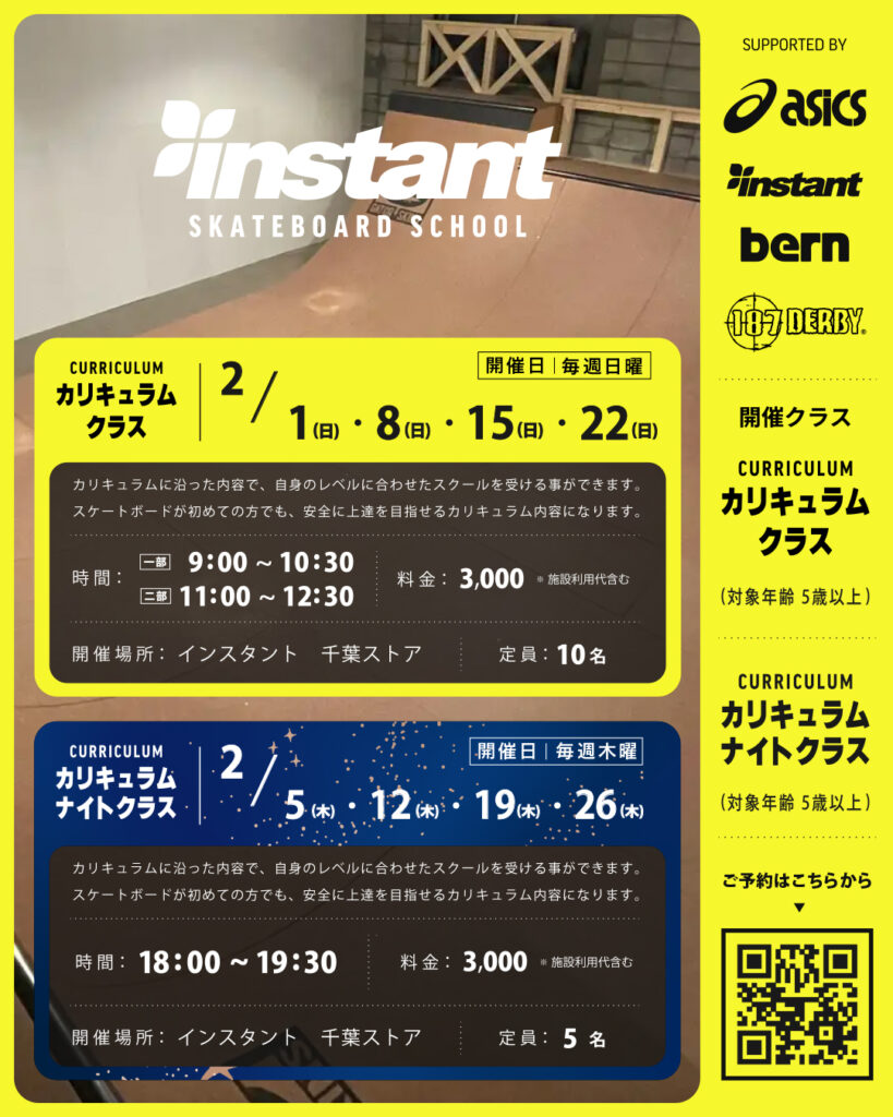 ▶千葉みなとスクールの詳細やご予約はこちらから→【ご予約専用ページhttps://instant-skateschool.jp/chiba/