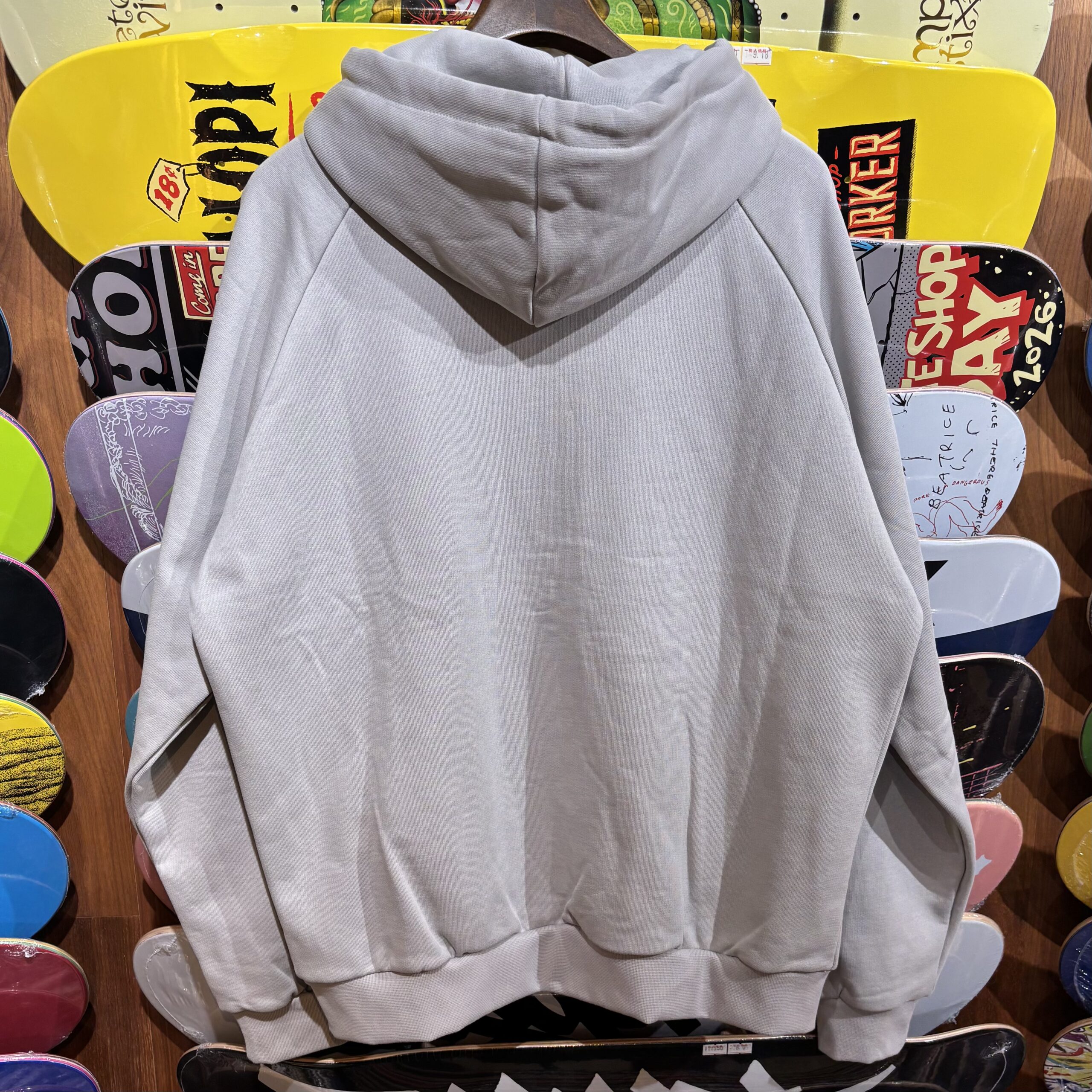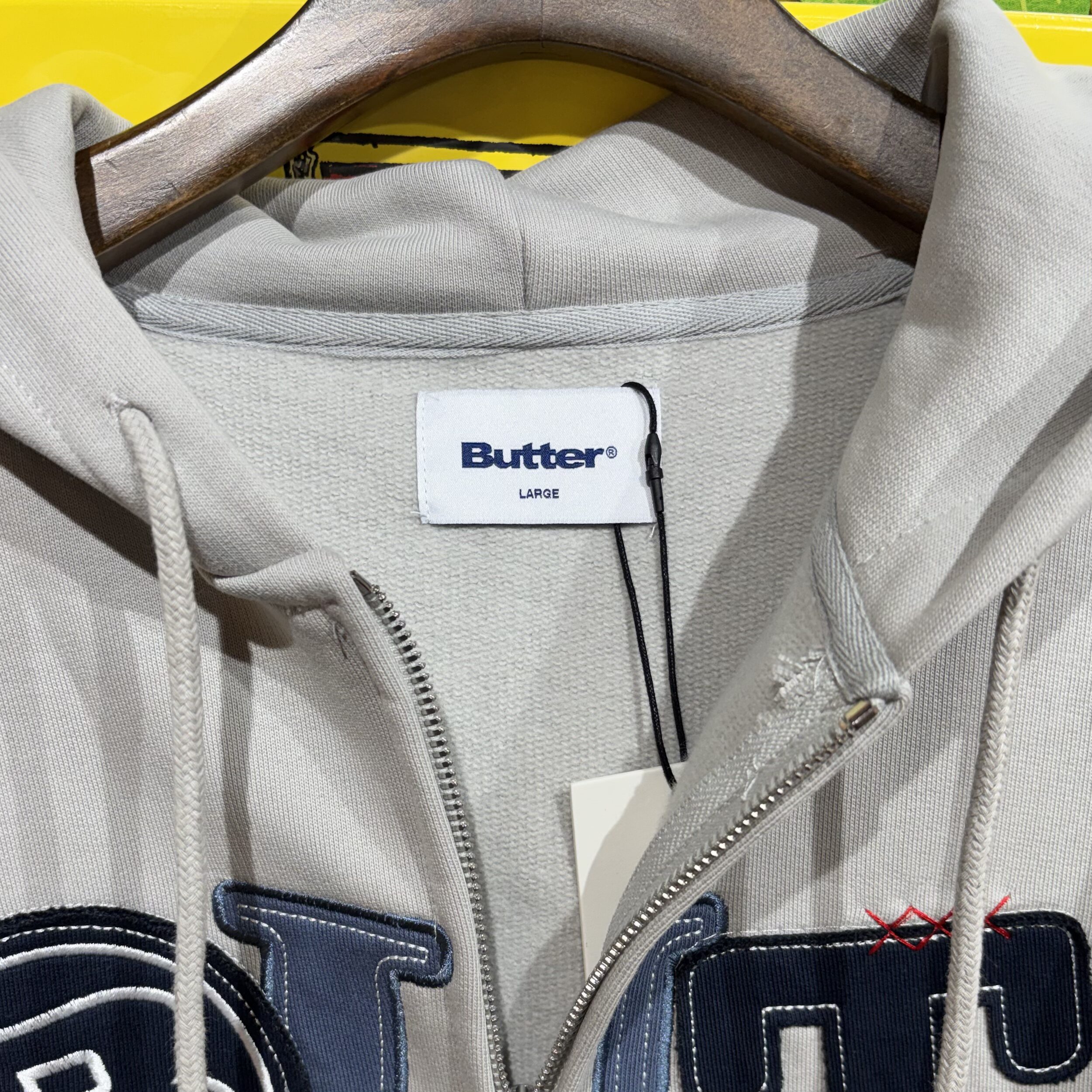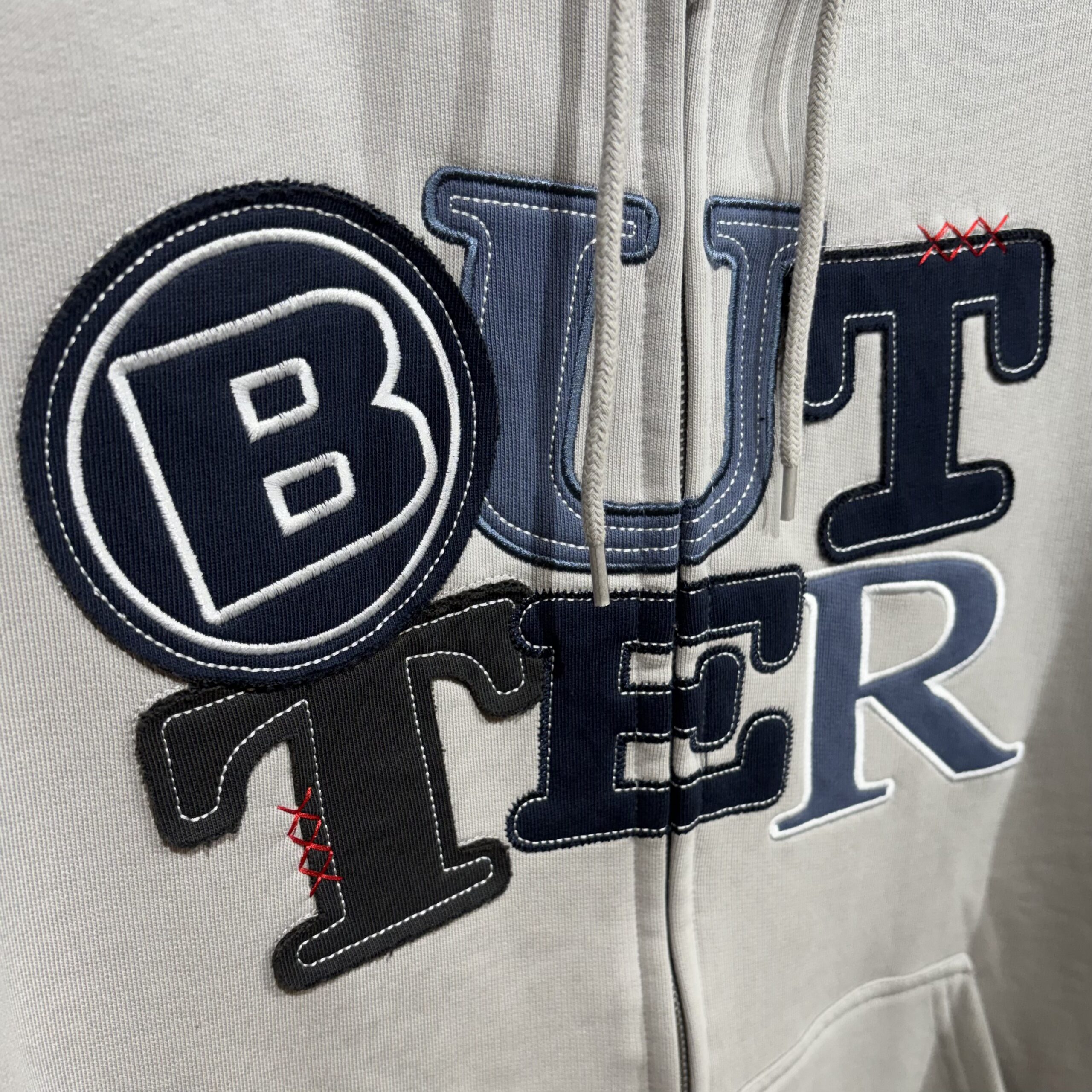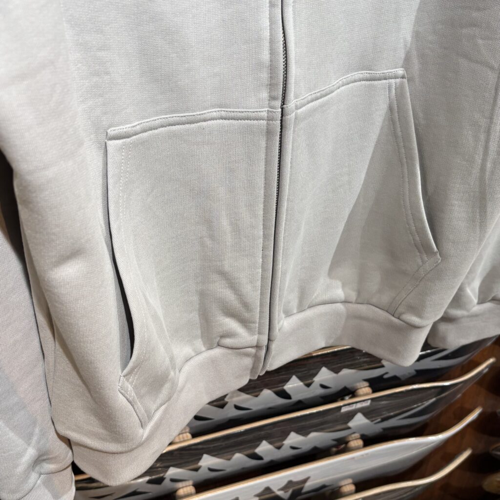 パッチワークが施されたジップパーカー! セメントというカラーらしく、かなり渋めなカラーとなっています✨ サイズはM、Lの入荷! これからの季節に活躍してくれそうです!!