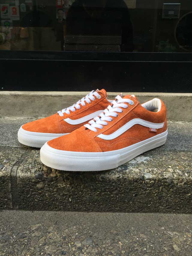 OLDSKOOL PRO こちらはフルスエードでございます。オレンジ色の配色がかなりかっこいいですね!VANSの代表作のひとつ、サイドストライプが特徴のOLD SKOOLをスケート仕様にアップデートさせたPROラインです。耐久性や衝撃吸収性が向上していますよ!ぜひ!!