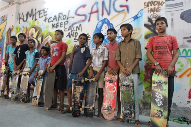 インド デリー近郊のスケートパークへ、デッキが届きました。