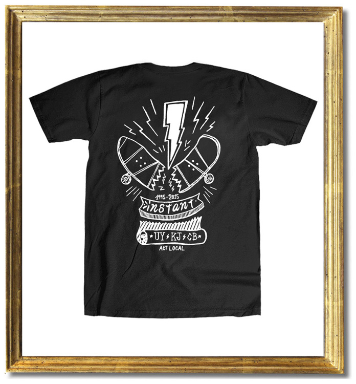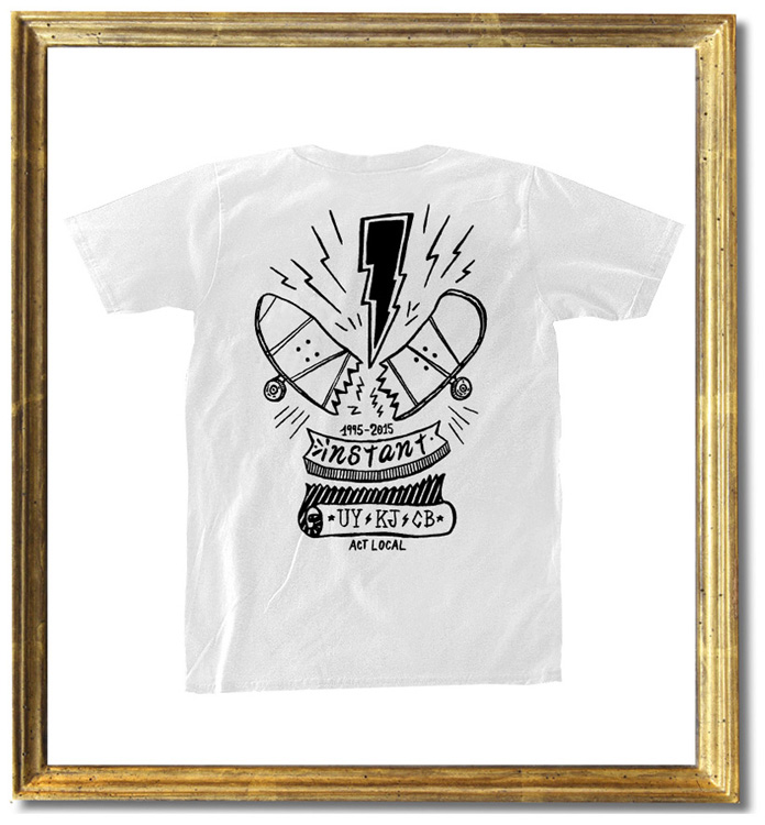このたび20周年を記念して、Ryuji Kamiyamaさんに手がけて頂いたこのデザインで『instant20周年記念Tシャツ』をリリースします。詳細はwebストアからチェックしてみて下さい。