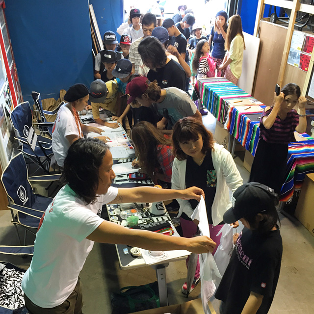 そしてまたある日、volcomのコンテストのmcでした。もう当日は雨ですよ。朝からザンザン降り。でも現地到着して驚いた。すっごい数の人がもう受付開始前から会場にいるのです。車のナンバーを見たら近くだけじゃなくて東北や関西からも。アツい。みんなこういうコンテストに駆けつけるって流れがかなりアツい。迎えるvolcomのみんなもまたアツくて、もうスタッフの配備と役割がピシッとしてます。僕はmcで色んな現場に伺ってますが、volcomのオペレーション本当にカチッとしてた。さすがです。