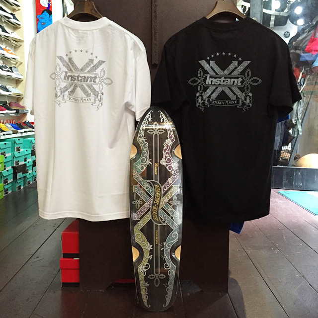 こちらはinstant 20周年記念デッキであります。同時にリリースされた7starsデザインのTシャツのカッコ良さがハンパないす。そもそも7starsとは10周年の時に会社のCIをすることになりまして、スケートボードやストリートカルチャーが詰まっているところにお願いできれば、ってタイミングでご縁を頂き、現在のロゴや10周年デッキをデザインして頂くことになりました。30年近く前の新宿ジャブでもクロスしている同じカルチャーを経験した同士で、かなり曖昧なイメージをハッキリとしたデザインワークで表現して頂きました。15周年のクルーザーのデザインなんかは今見てもグッと来ちゃう出来映えで、手書きの原画を吉祥寺ストアオープンの際にプレゼントして頂きましたので、ぜひ吉祥寺ストアでチェックして頂きたいです。ご希望でしたら僕が原画の御説明をさせて頂きます。かなり長いですが最後まで聞いてもらいます。うふふ。ま、それはいいとしてそんな流れからの20周年でありまして、いわば必然的にこのクルーザーは生まれたのであります。デッキのスペックといい、グラフィックの緻密さといい、もちろん乗り心地まですべて僕らの経験が詰め込まれたクルーザーであります。おかげさまでwebストア分はすぐに売り切れてしまいました。浦安、吉祥寺ストアも完売で、もしかしたら千葉にあと1本あるかも、って状況です。Tシャツも急ぎ目で。おかげさまです。