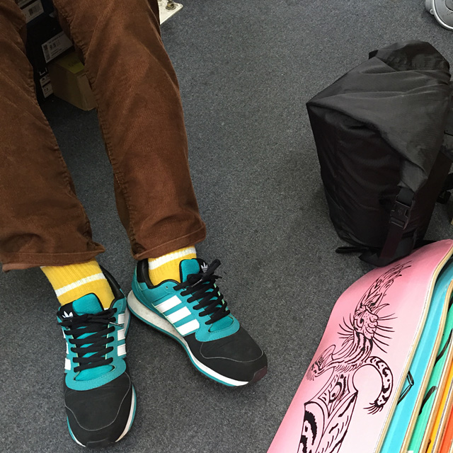 yuumacも。たまに突然寄ってくれる神出鬼没っぷりが素敵です。今や超絶人気ブランドのbrixtonの敏腕営業マンですが、話すことは以前と変わらずスケボーのことばっかりです。さすがだ。