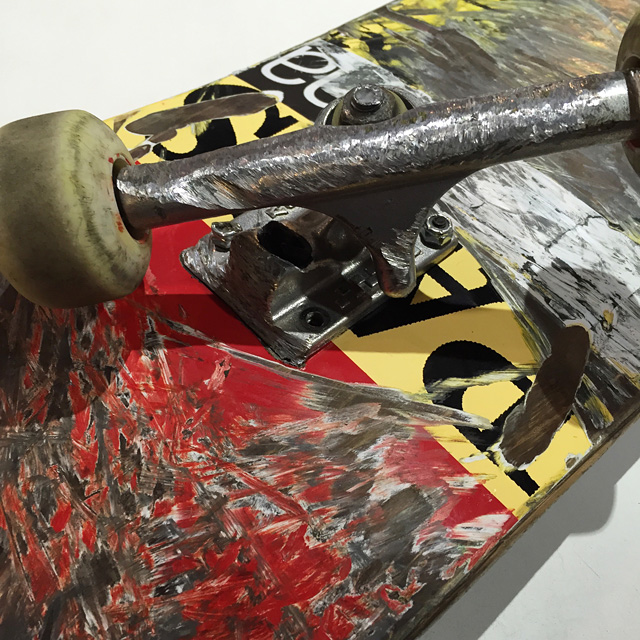 またテンマがトラックぶっ壊してきました。最近ではスラッピーがスタンダードになってきて、トラックがズクズクの人いっぱい見かけるようになりました。スラッピーからのトラックの削れ方はまた独特で本当にぶつかり稽古な感じです。叩き付けたような深い傷、あるトリックのように統一感のない痕跡。この傷のひとつひとつに経験値が刻み込まれてスキルが磨かれるのであります。まだスケートボードをやったことがない人は少しでも早く始めた方がいいです。スケートボードを始めるだけで、かなり毎日が変わってきます。