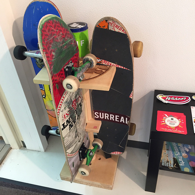 千葉ストアにある創の松本さんが作ってくれたデッキスタンドがかなり調子いいっす。これ4面にデッキが立てられるんだけど、こんな感じで3面利用したら普通の家の玄関に置いてもいい感じですね。その日の気分でデッキ選んでプッシュできる生活したい。