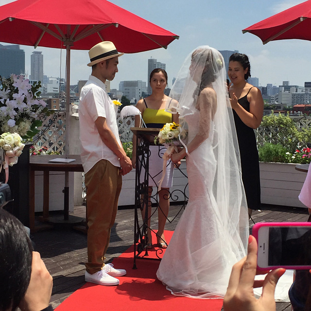 ちょっと緊張しているサトルが新鮮でした。いつもの笑顔なんですがやっぱりちょっと緊張してる。経験者はわかると思いますが、結婚式ってそこに至るまでのプロセスがすっごく色々あって、もう七転び八起きで当日を迎える。そうでもない?僕の場合はそうでした。もうロウソク何本とかどうでもいいし、みたいなところから、君がそう思うなら、的なプロセスを経て当日に至るのです。おっと、僕の場合はどうでもいい。当日は最高の天気でした。ピーカンの空の下、結婚の誓いを宣言しておりました。おめでたい。当日お越し頂けなかった、というか本人パツパツでご連絡をお届けできなかった皆さん、サトルの代わりに僕がご祝儀やお祝いをお預かりしますので吉祥寺ストアまで送って下さい。なんてね。ぜひお祝いのお言葉を折りをみて本人にご連絡頂けますようお願いします!