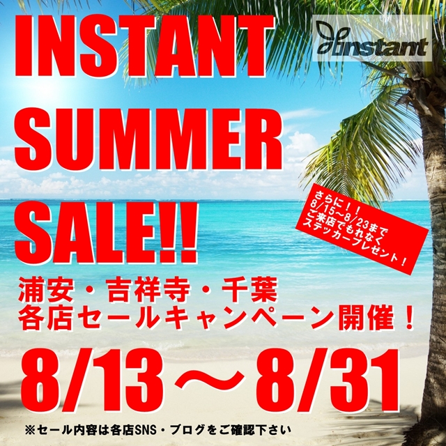 こんばんは、クリです。本日よりINSTANT SUMMER SALEを開催します!