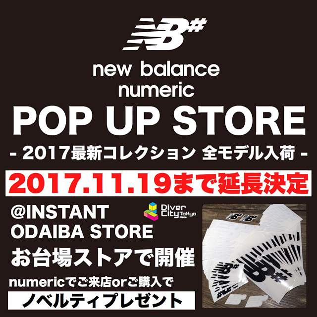 現在、お台場ストアで開催中のNew Balance Numeric POP UP STOREが大好評につき、
