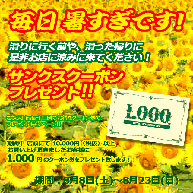 なんだかさっき久々に土砂降りましたね!涼しくなるかと思ったら余計暑くなってますwまあこれも夏っぽくていいですね!まだまだ夏は終わらないってことです!千葉ストのダイスケです!つす!