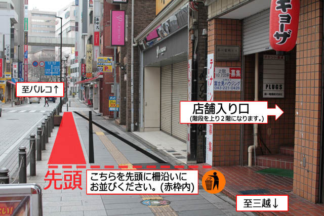 近隣の方のご迷惑となりますので、 深夜早朝からのお並び、路上駐車はご遠慮ください。