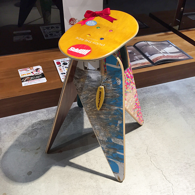 お台場ストアのオープンのお祝いに、カリフォルニア工務店の中島さんがデッキチェアを持ってきてくれました。リボン付き。うれしい。お台場ストアのシューズフィッティングの際にお使い頂いておりますので、ぜひご来店時には座り心地を試してみてください。この椅子はデッキを5枚使って作るのです。アイデア溢れる工法でオリジナルでオーセンティックな仕上がりであります。浦安ストアにも吉祥寺ストアにもございますのでチェックしてみてください!