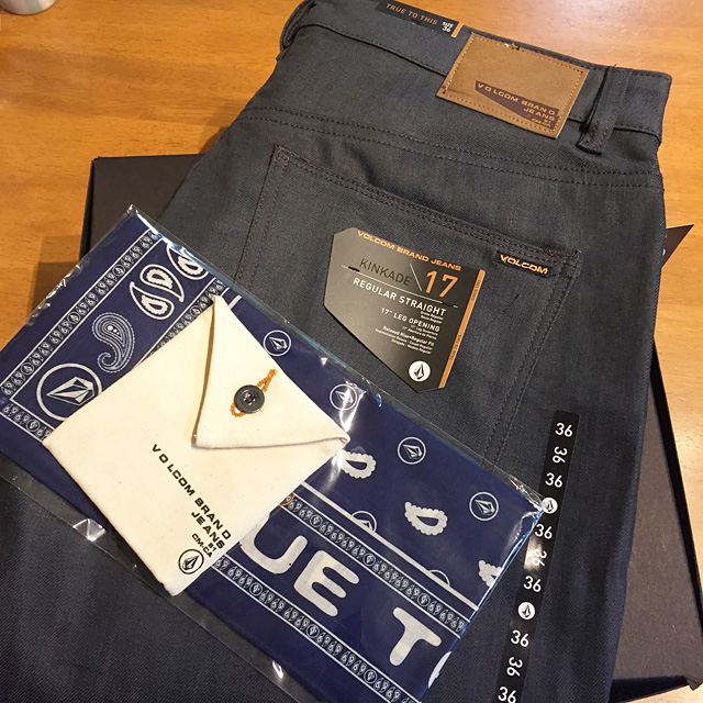 ストレッチデニムっていい。もうオーリーできないけど足が上がるかどうかはスケートボーダーとしての重要課題。このVOLCOMのデニムはね、おじさん達はハッとすると思うよ。リジットの501もモチロン素敵ですが、色々と経験していく中で自分に新しい定規ができるのは僕は好き。お台場ストアのあるdivercityのvolcomストアも試着するとバンダナくれるのよ。バンダナうれしいよね。