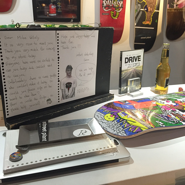 バレリーが来るってことで吉祥寺ストア店長のさとるは手紙を書きました。英語が上手じゃないので少しでも気持ちを伝えたくて書きました、って。完全に気持ちが伝わってたよ。バレリー超喜んでた。さとるもバレリーも僕らの周りのスケートボーダーはみんな、それぞれのスケボー定規を持っています。言葉ではない何かを伝えるには滑るのが一番なのですが、こういうのもまたスケボー定規かな。