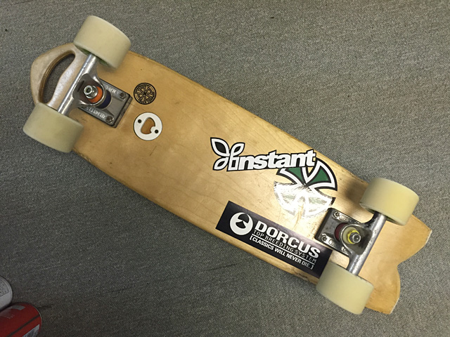 クリのクルーザーのベアリングが死んでました。もうガリガリな感じ。そこでクリーナーで掃除して注油して、って自分でやってましたが、全行程終わってみてやっぱりなんだか回りが悪い。異物が入った状態でガリガリ使っていたのもあって、良く回るようにはならないのも覚悟はしてたようですが、クルーザーはやっぱりスムーズに回るベアリングが気持ちいいすね。instant各店では、デッキにinstantのステッカーが貼ってあればメンテナンスを無料でさせていただきます。セッティングのチェックや簡単な調整なんかはお気軽にお持ち頂ければすぐに対応させて頂きます。通販でご購入の方には基本的にすべてのお荷物にinstantオリジナルステッカーを同封させて頂いておりますので、お荷物が届いたらステッカーはご自分のデッキにパチッと貼っておいてくださいね。