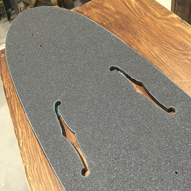 やっぱりこのfホールまでキッチリとメイクしておりました。グリップ考えると貼っちゃった方がいいよね。オシャレ貼りもこのデッキに限りアリです。