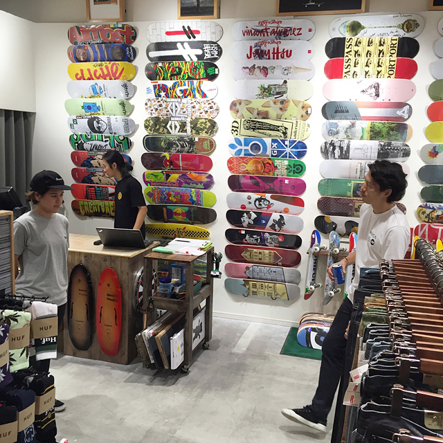 おかげさまでお台場ストアも徐々にスケボー屋になって行ってます。ぶっちゃけ箱があってもスケートボーダーがいなければスケボー屋じゃありません。お台場、浦安、千葉、吉祥寺と、各店それぞれの持ち味や個性がありますが、やっぱり中心にあるのはどこもスケートボードなのであります。