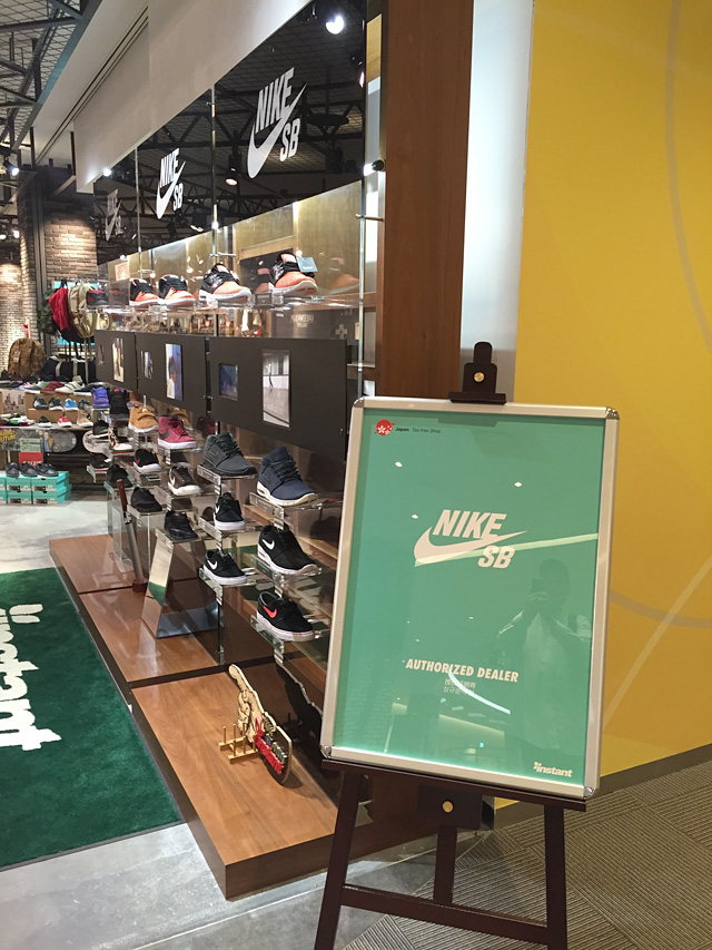 NIKE SBのコーナーには最新作が並んでます。最近はアフタースケートモデルも色々あって欲しいのいっぱいで困ります。