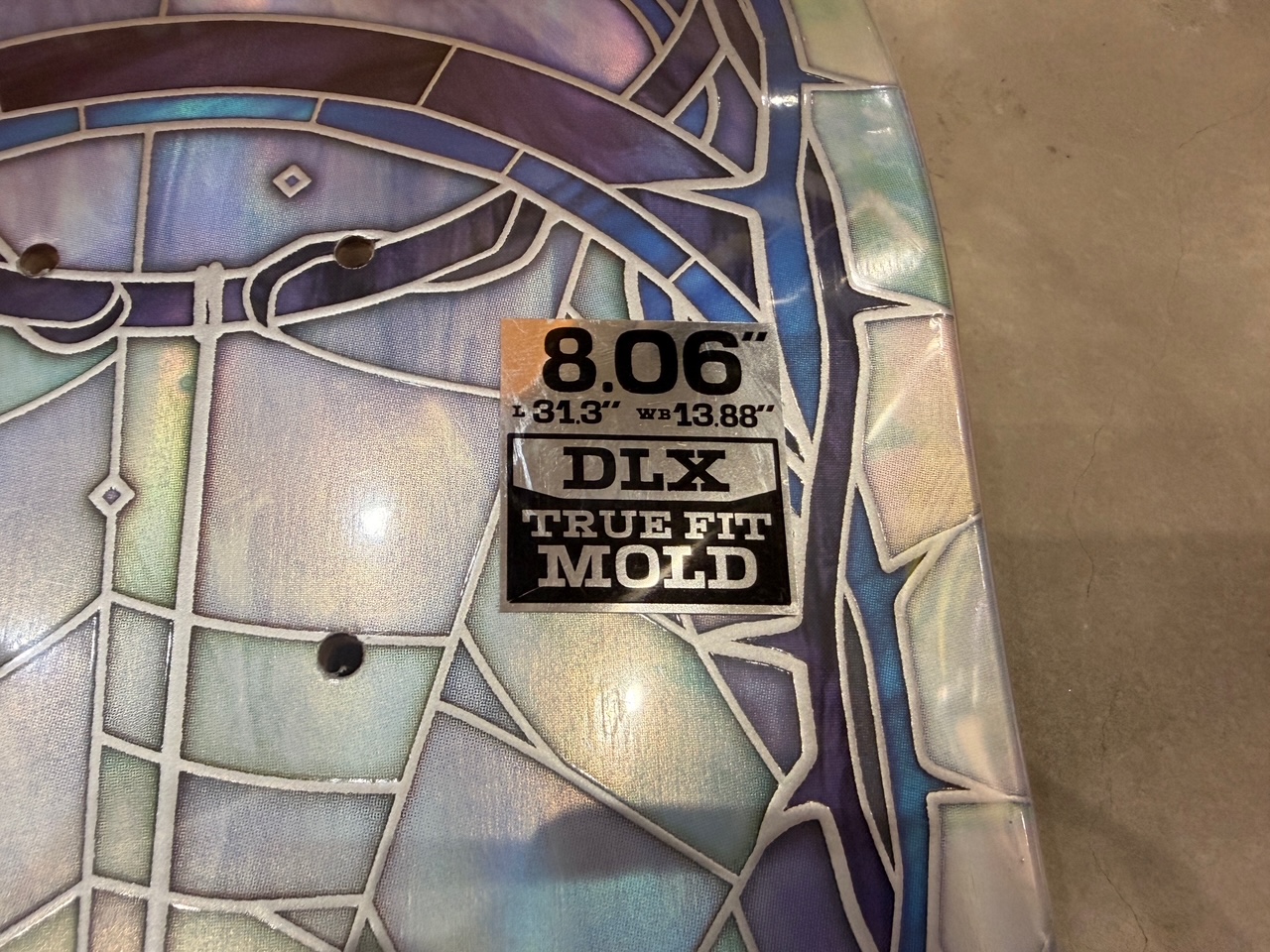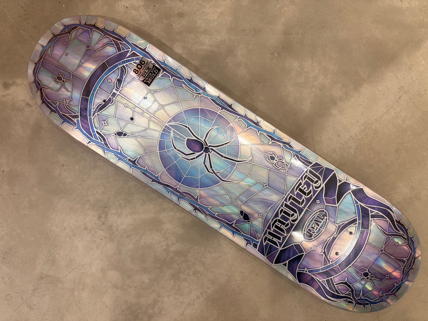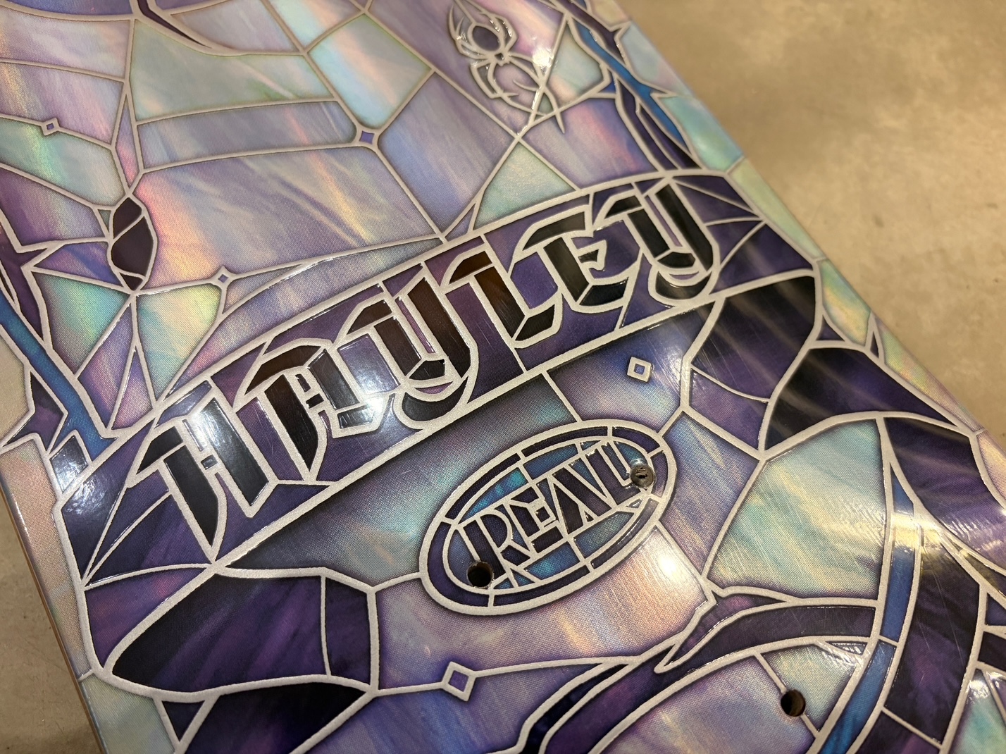 今回の彼女のデッキは貝殻のように光る表面でデザインはステンドグラス風になっています。