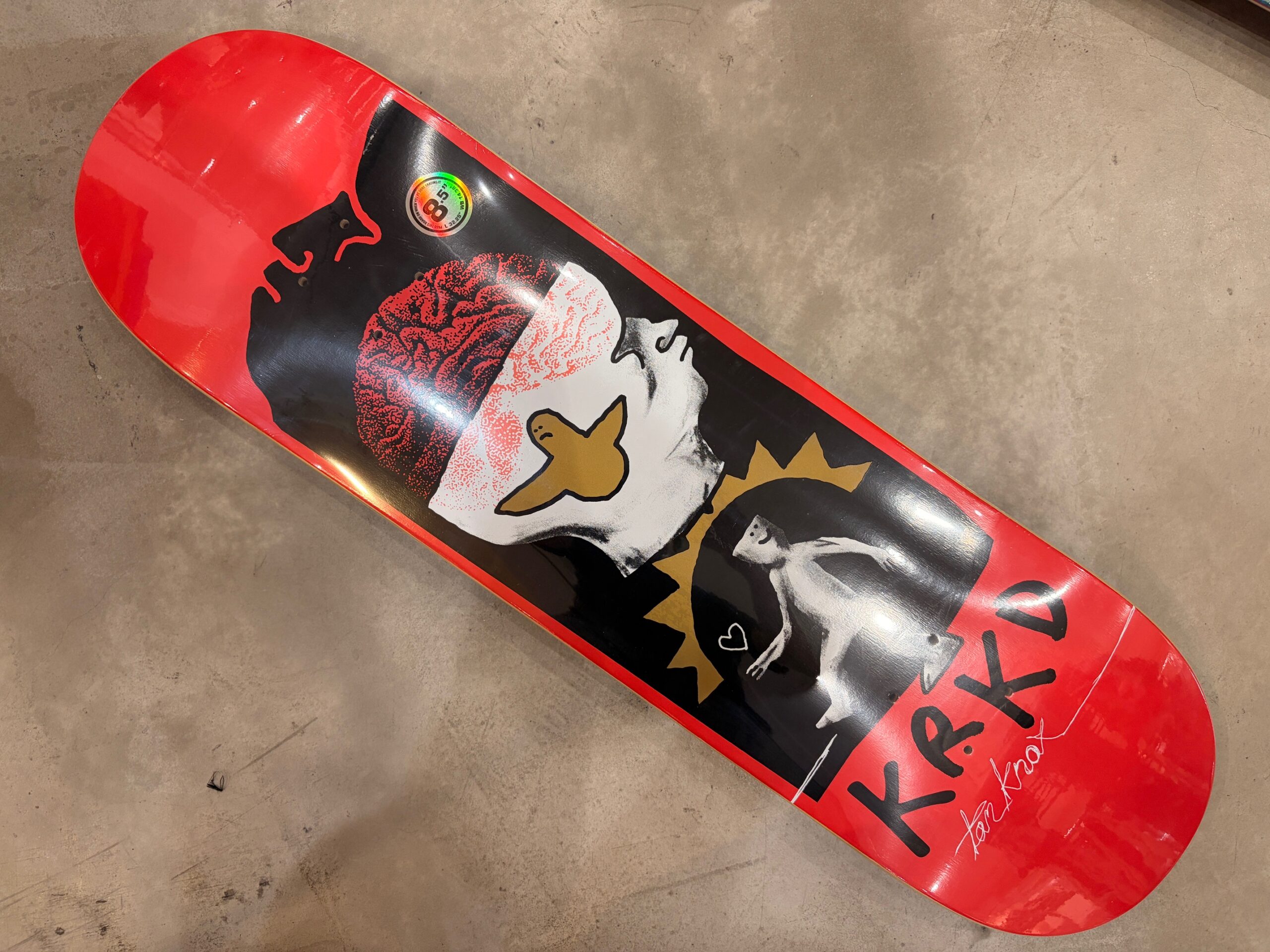 グラフィックは彼のクレバーなスケートに合った脳みそのグラフィックで少し不気味ですが周りの赤の色と合わさってかっこいいデッキになっています!