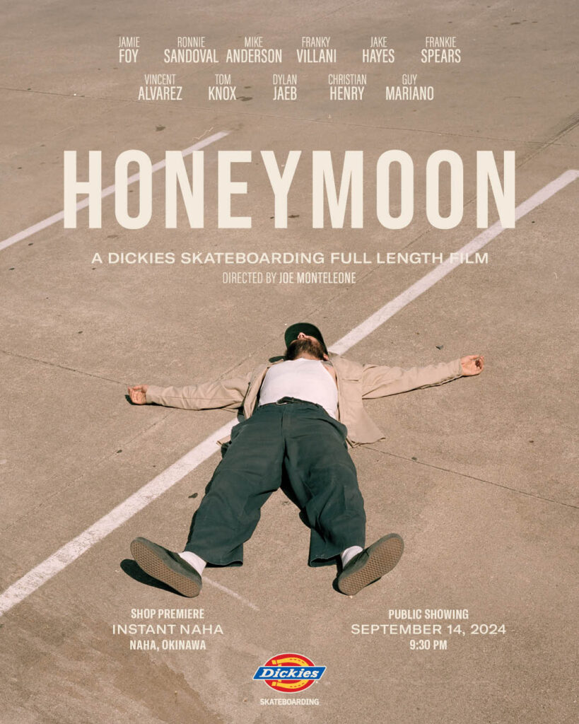 9/14(土) 21:30~「HONEYMOON」 13日の金曜日の、次の日はinstant那覇でDICKIESの初フルレングスビデオとなる「HONEYMOON」の上映会です! メンツがアツイので楽しみですね。どのくらいの尺なのかもまだ謎なんですけどこのメンツなら信頼の品質だはずです。 ビールもジュースも準備してお待ちしております〜。土曜の夜の助走つけにinstant那覇で乾杯しましょ❤️