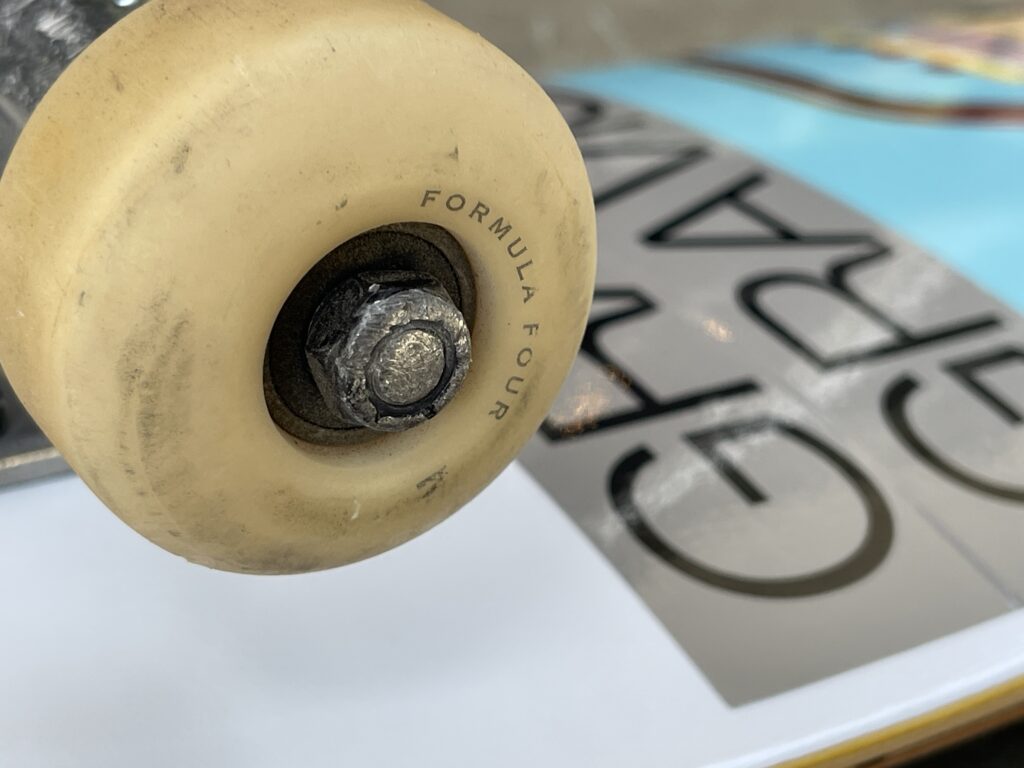 ウィールはSPITFIRE F4 99 52mmとテックなサイズをチョイス。少し前に角が立ったシェイプを勧めて使ってたことがあるのですがやっぱりクラシックシェイプなんだそう。グラインドの掛け替えは角がないほうがいいみたいです。