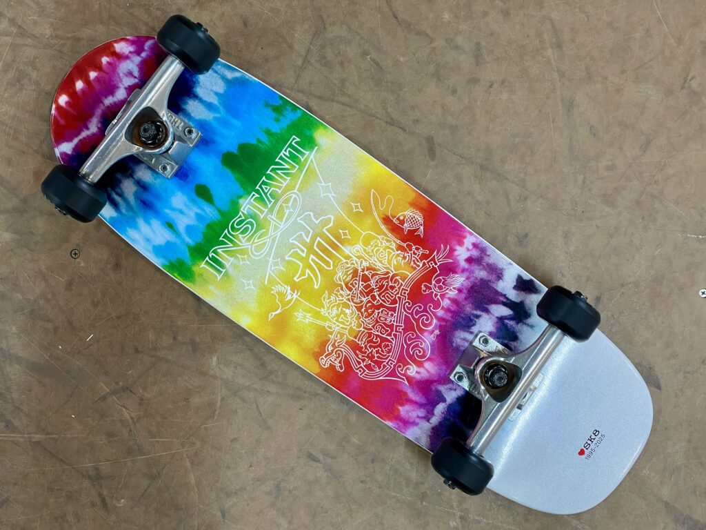 使用するデッキはもちろん30周年を記念して”7STARS”デザインの宝船CRUISERデッキ。デッキの長さは短くも幅は安心の8.0inchなので、超小さいクルーザーとは安定感が違います。グリップテープの貼り方は少し洒落っ気を入れて『ステッカーはみ出して貼ってカットオフ』を取り入れてその上からグリップテープもずらして貼ってみました。