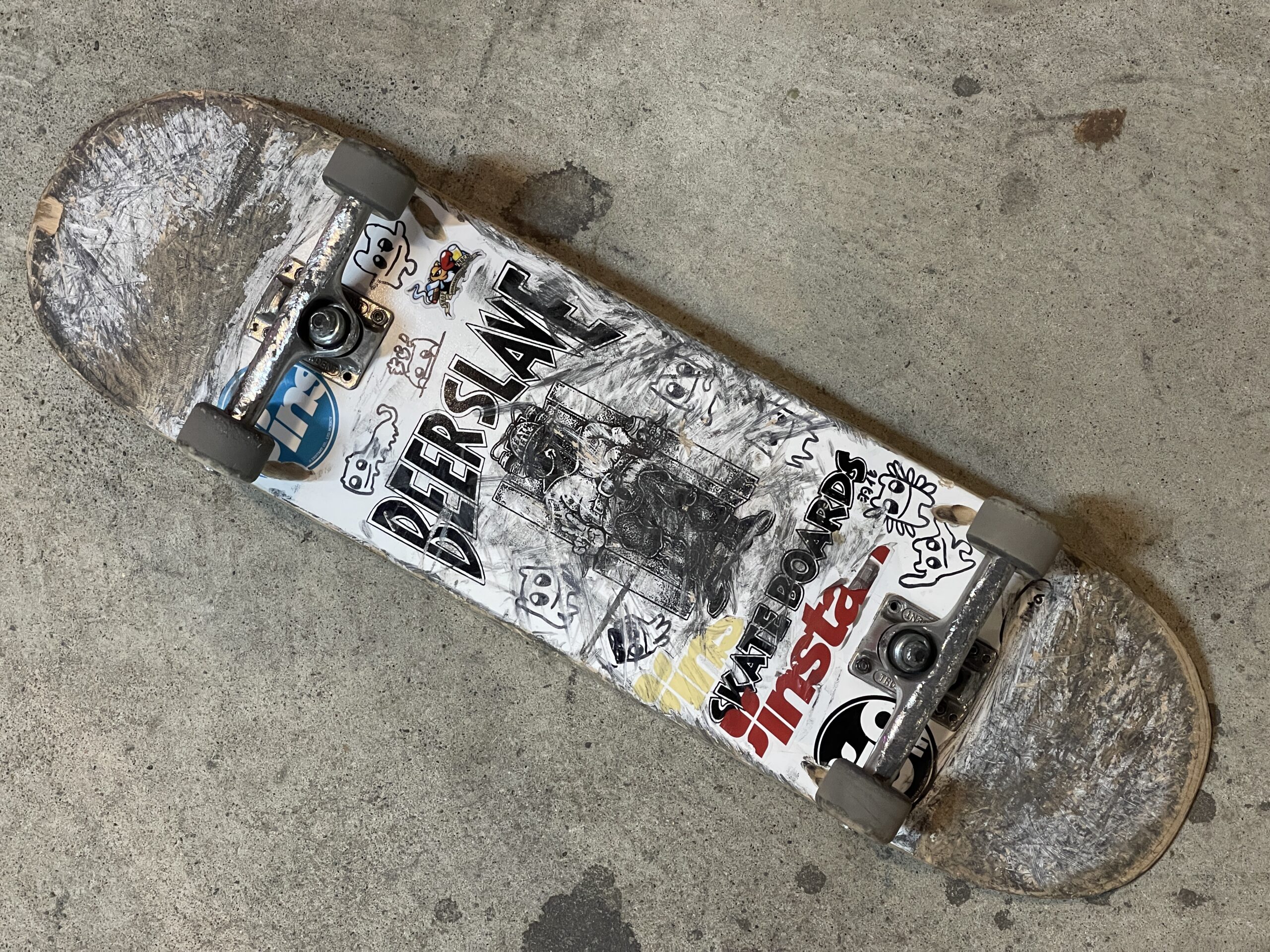 かなりレア?なBeerSlaveのデッキは同じローカルのナベちゃんから譲り受けたとのことで、ダンガンはデッキチョイスに関しては8.25から9.0くらいまで決行なんでもイケちゃう印象、その昔、9.25のHEROINを千葉ストアでゲットして『めっちゃ調子イイッス!!』って言ってたのを今でも覚えてますw最近は8.5inchのノーマルシェイプに落ち着いたみたいです。