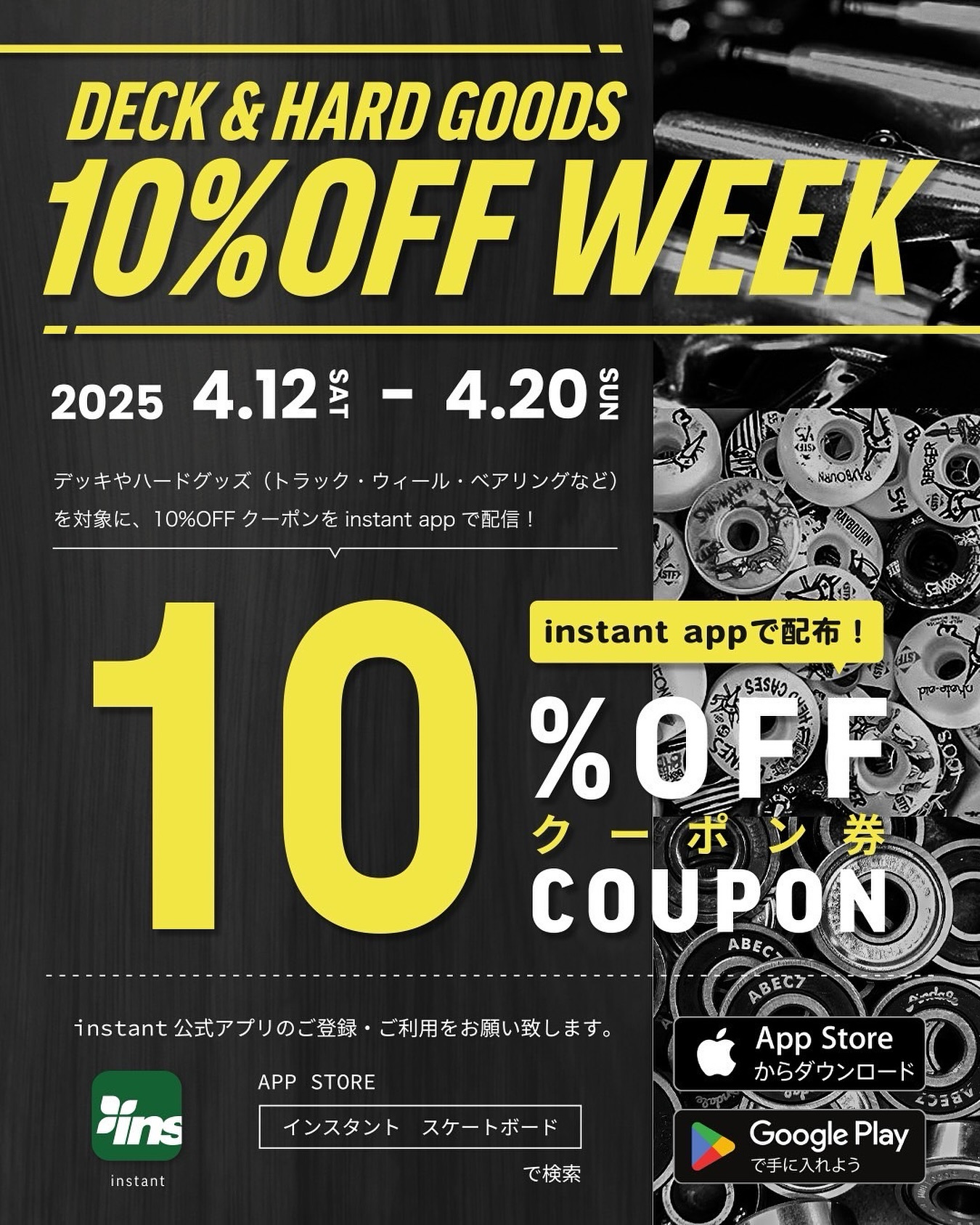 X'mas Special Priceinstantオリジナルコンプリートが、X'masだけのスペシャルプライスにCHUULIPとのコラボレーションデッキを使用した、低価格・高品質なコンプリートセット。競技レベルでの使用も可能で、初心者から上級者まで安心してお使いいただける内容となっています。「スケートボードを始めたいけど価格は抑えたい。だけどプロも使える内容がいい!」そんな声にお応えする一台です。今年のクリスマスプレゼントに、ぜひお選びください🏻無料X'masプレゼントラッピング & 日時指定お届けサービスも開催しています通常価格:¥18,000-(tax) X'masスペシャルプライス:¥13,500-(tax)【期間】12/6(土)~12/25(木)【対象店舗】instant全店、Webストア※Webストアでは、ギフトラッピング・日時指定配送のご希望を備考欄にご記入ください。⸻ instantだけの3大特典付き!コンプリートセットをご購入の方には、instantだけの「3大特典」を同梱して発送いたします。ビギナースケーターに役立つこと間違いなしのセットです。1. スケートスクールチケットinstantお台場ストア、instant千葉ストアで開催している、コンプリート購入者限定スクールに無料でご参加いただけます。2. オリジナルデッキバッグ(X'mas ver)耐久性・通気性に優れた不織布仕上げのinstantオリジナルデッキバッグ。10インチのコンプリートにも対応しています。3. フリーメンテナンスベアリングのオイル補充やねじ切りなど、面倒なメンテナンスはスタッフにお任せください。メンテナンスをご利用の際は、デッキにinstantステッカーを貼ってご持参ください。#Xmas#christmas#Skateboard#クリスマス#スケートボード#クリスマスギフト#instantskateshop#instantskateboards